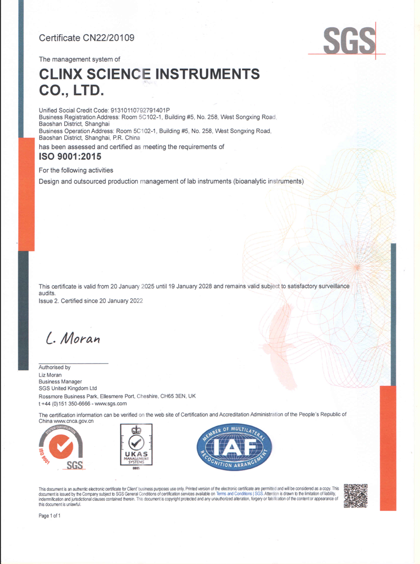 Clinx勤翔成立于2006年,是一家集研发、生产、销售、服务为一体的高新技术企业,致力于为生命科学领域提供专业的生物成像系统及图像分析解决方案,主要产品线包括小动物活体成像系统、植物活体成像系统、荧光及化学发光成像系统、凝胶成像系统、电泳仪器和试剂等。公司于2015年荣获高新技术企业殊荣,2019年入选上海“专精特新”企业,2024年成为上海泰坦科技股份有限公司(股票代码688133)控股子公司。Clinx勤翔产品深受国内外各大院校、科研机构和生物制药公司的信赖,我们秉持“精于品质、专于服务、勇于创新”的经营理念,以用户需求为中心,通过持续创新的产品和技术服务,优化用户使用体验,帮助科研工作人员提升科研效率、获取可靠实验数据,助力全球生命科学研究。